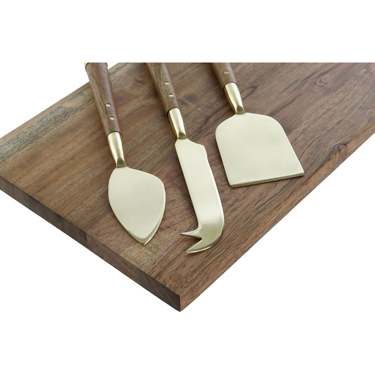 Cutting board DKD Home Decor Golden Natural Stainless steel Acacia 46,5 x 17,7 x 2 cm (4 Pieces)